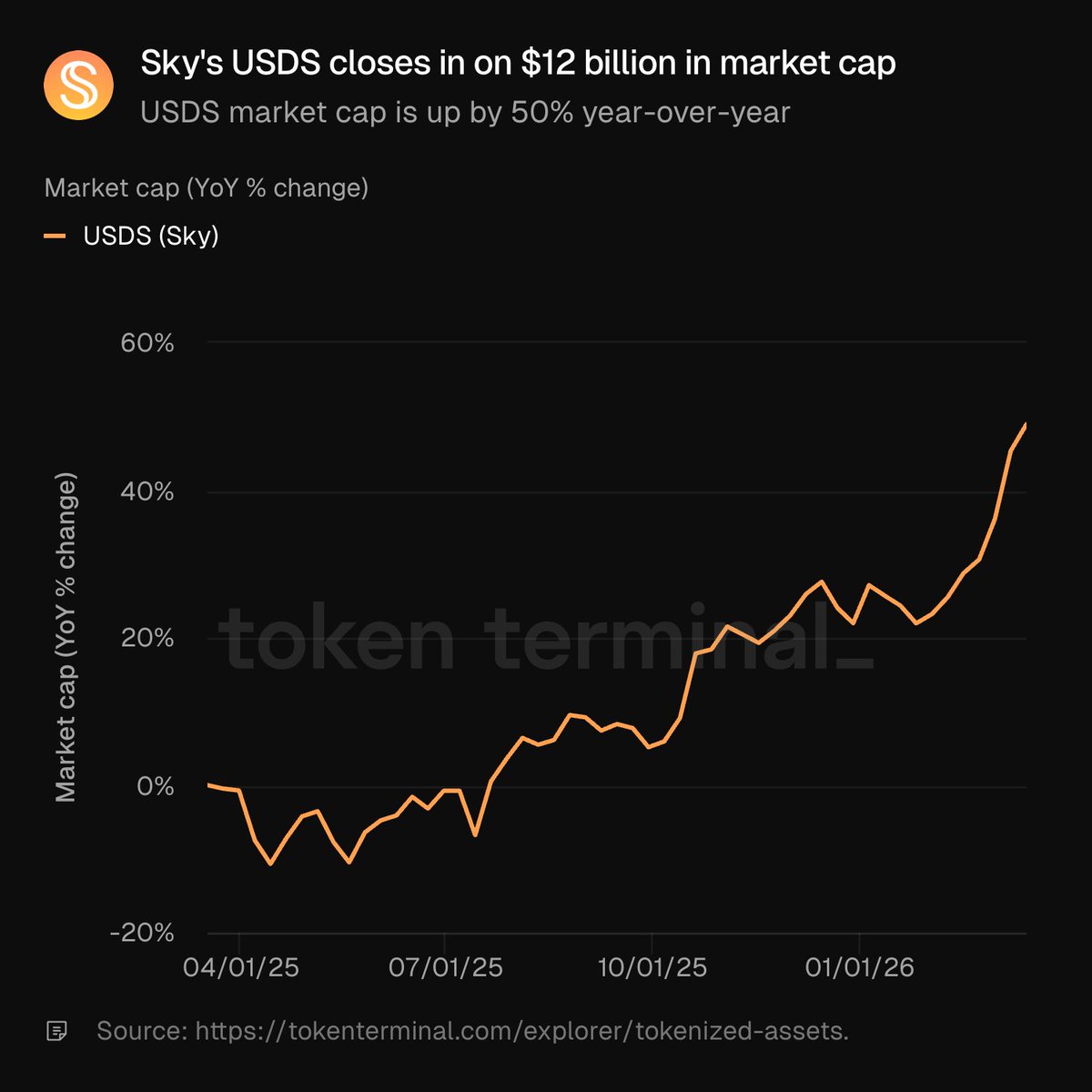 Sky Sports' USDS market capitalization is approaching $12 billion. USDS market capitalization has increased by 50% year-over-year. Issuers and assets worth noting 👇