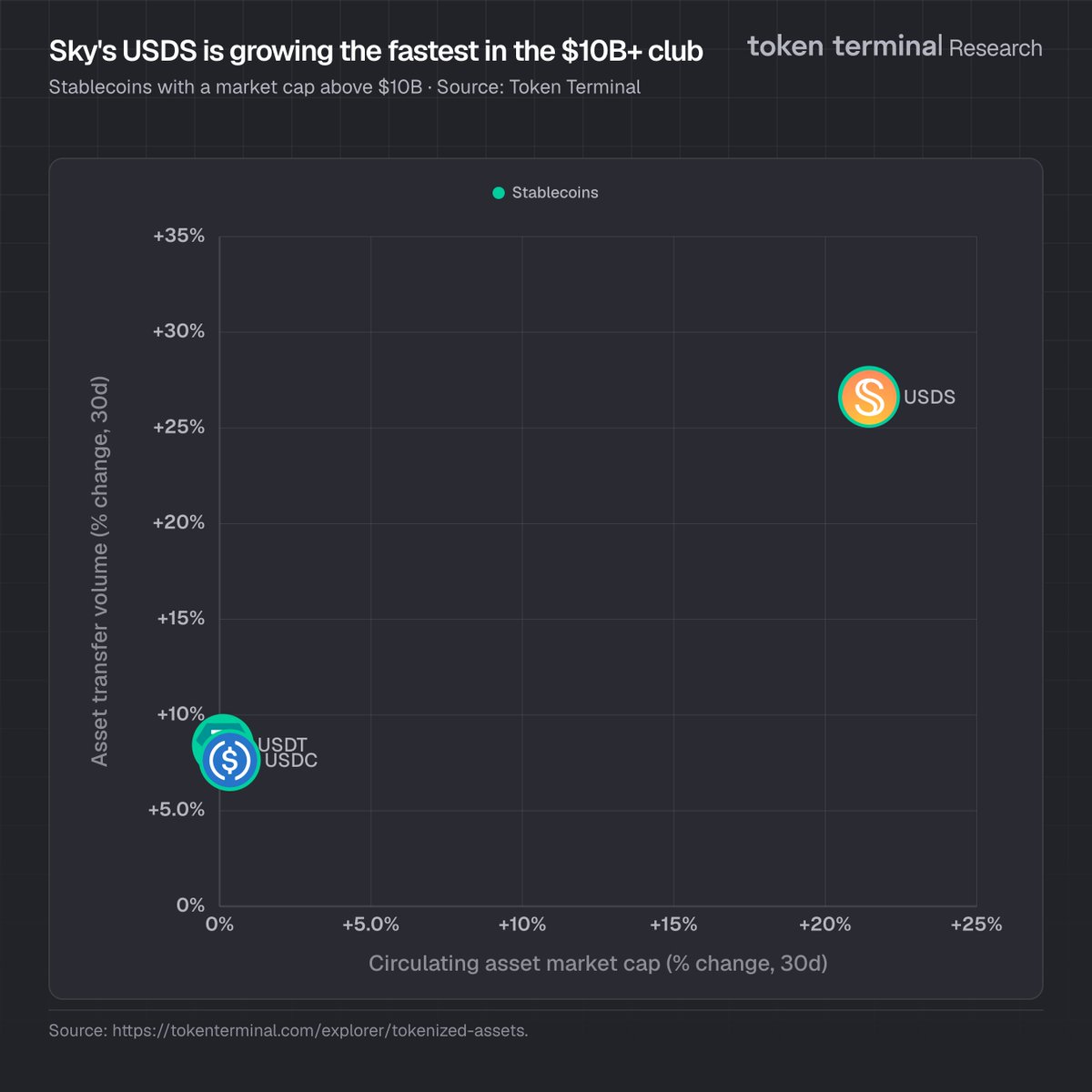 Sky Sports' USDS derivatives trading volume saw the fastest growth among trades with a market capitalization exceeding $10 billion.