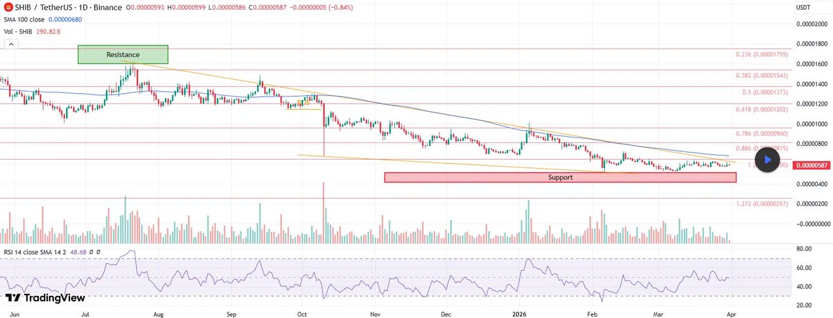 Is #ShibaInu poised to break out of its descending channel? Key price levels are in the $0.00000645-$0.00000650 range. #SHIB Shiba Inu prices have rebounded and held key support levels near $0.0000052 and $0.0000056. This support level coincides with the lower trendline of the descending wedge; holding this level will maintain breakout momentum. If the breakout attempt strengthens, key resistance levels are in the $0.00000645-$0.00000650 range. If prices break strongly above this resistance level, the target price will be $0.00000815, representing a 38% upside from the current price.
