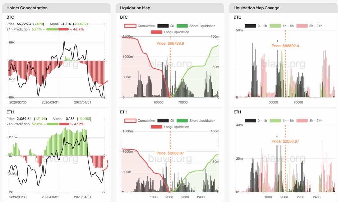 Following the US market opening, the concentration of short positions in Bitcoin (BTC) and Ethereum (ETH) has decreased… Whales are beginning to close out short positions/increase long positions in the short term (as shown by Whale Hunter), which may indicate a new round of short squeeze is imminent. Looking at the liquidation map, there are a large number of highly leveraged positions near the current price, with long positions predominating—this warrants close monitoring. Click here to view the actual Bitcoin/Ethereum liquidation map: