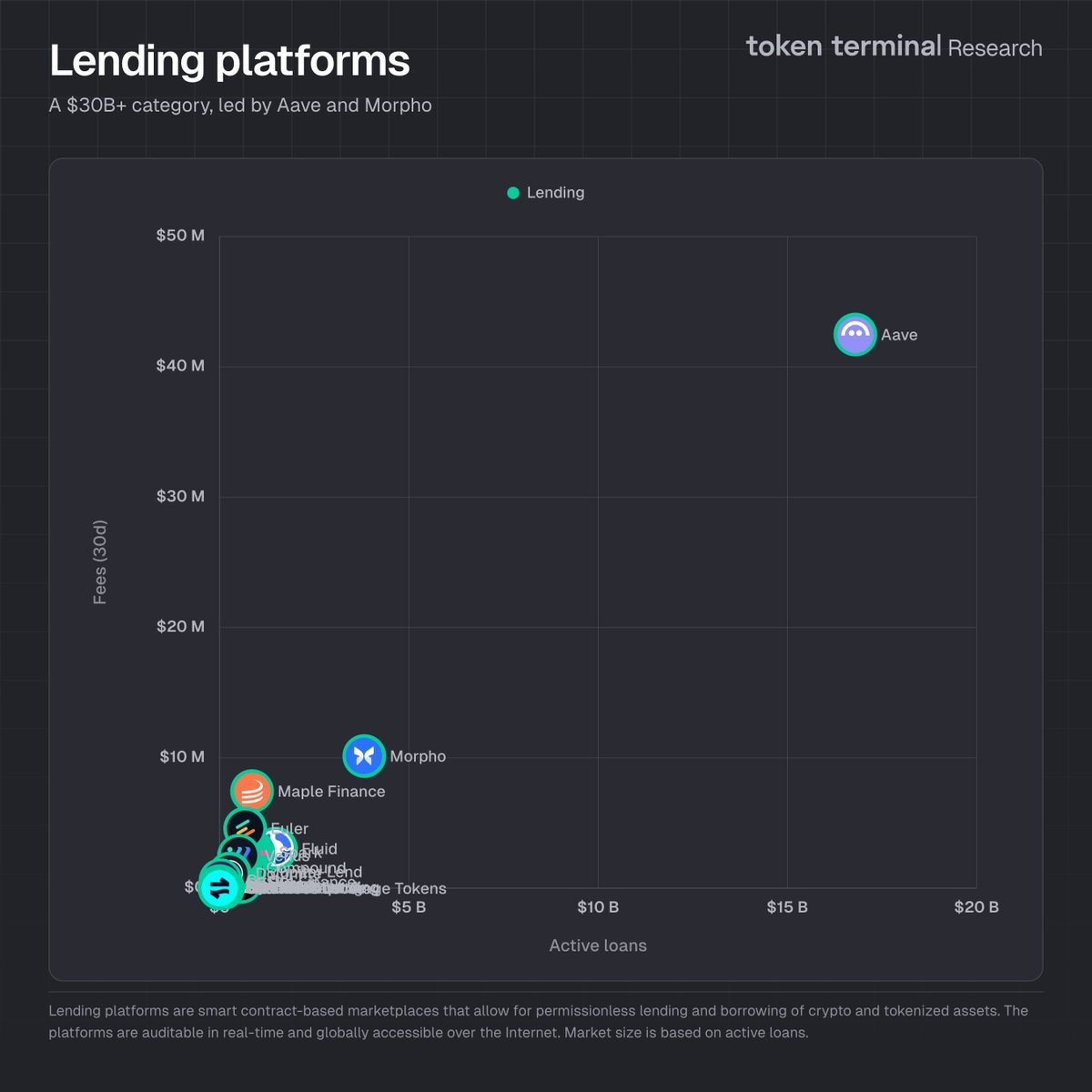 The on-chain lending market has exceeded $30 billion, led by Aave and Morpho.