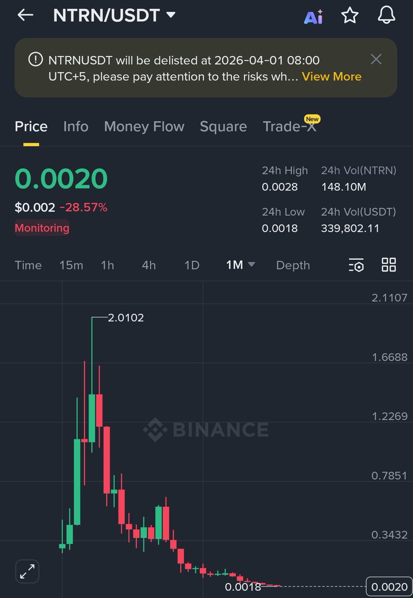 Holding altcoins on Binance looks scary. What if the bottom looks like this? I invested $65,000 in NTRN and only made $500. Haha, my initial goal was to double my money, but this altcoin rally looks terrible. Now I'm worried about other coins, especially $BIO, $ENA, $MIRA, $XPL, etc. What if the bottom looks like this? @paulkhls Looks like $BIO is next, haha. @binance If you buy altcoins on a central exchange, remember the bottom might look like this. It's best to stay away from altcoins; they've been performing poorly since 2023/24. @binance What about my other positions? I'll wait until the break-even point or the bottom also drops to $500.