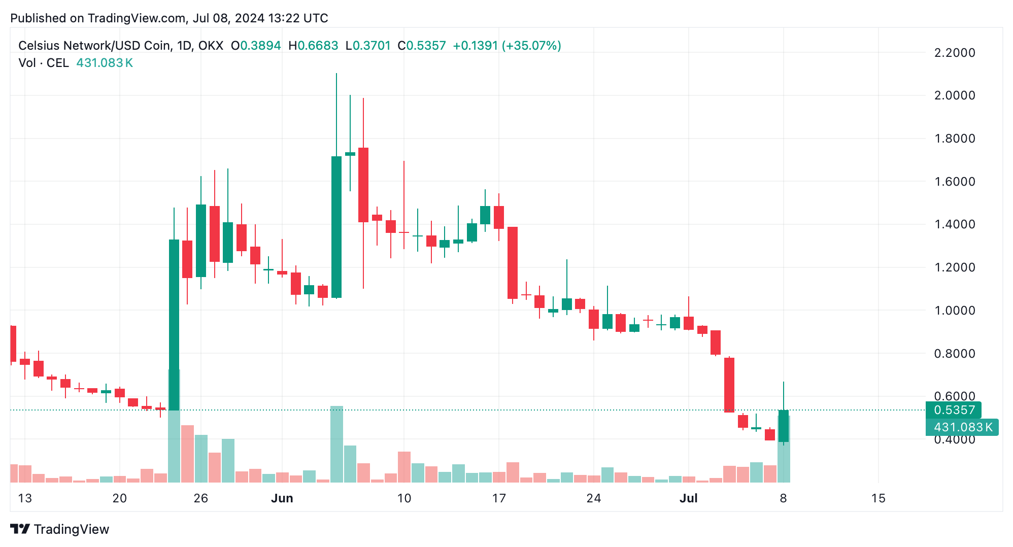 The biggest loser was Celsius’s token CEL, which fell 44.27%. This decline came after retail Celsius users were sued by the bankruptcy estate. Constitutiondao (PEOPLE) dropped 38.57%, mog coin (MOG) decreased by 32.86%, blast (BLAST) saw a 29.19% reduction, and io net (IO) took a 28.24% hit.