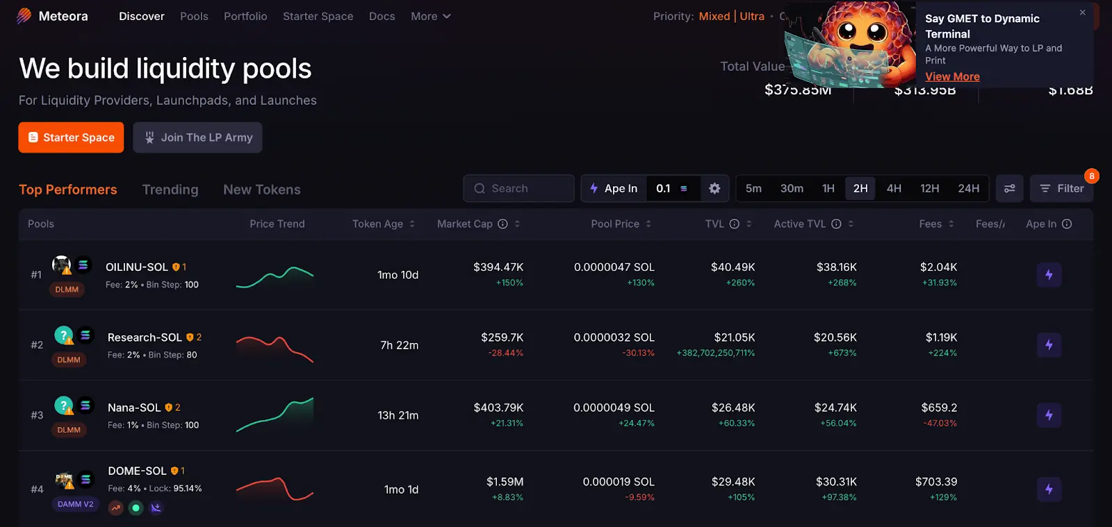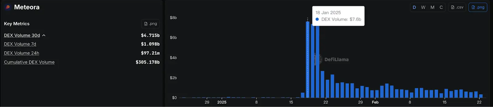 This strategy successfully translated into real-world monetization during the Trump token boom: when a large influx of retail investors arrived via Moonshot, these buy orders precisely matched the initial liquidity the Trump team had built on Meteora. This closed loop of "capturing traffic in the front end and handling transactions in the back end" enabled Meteora to achieve a single-day trading volume of $7.6 billion, accounting for 20% of the total DEX trading volume on the Solana chain.