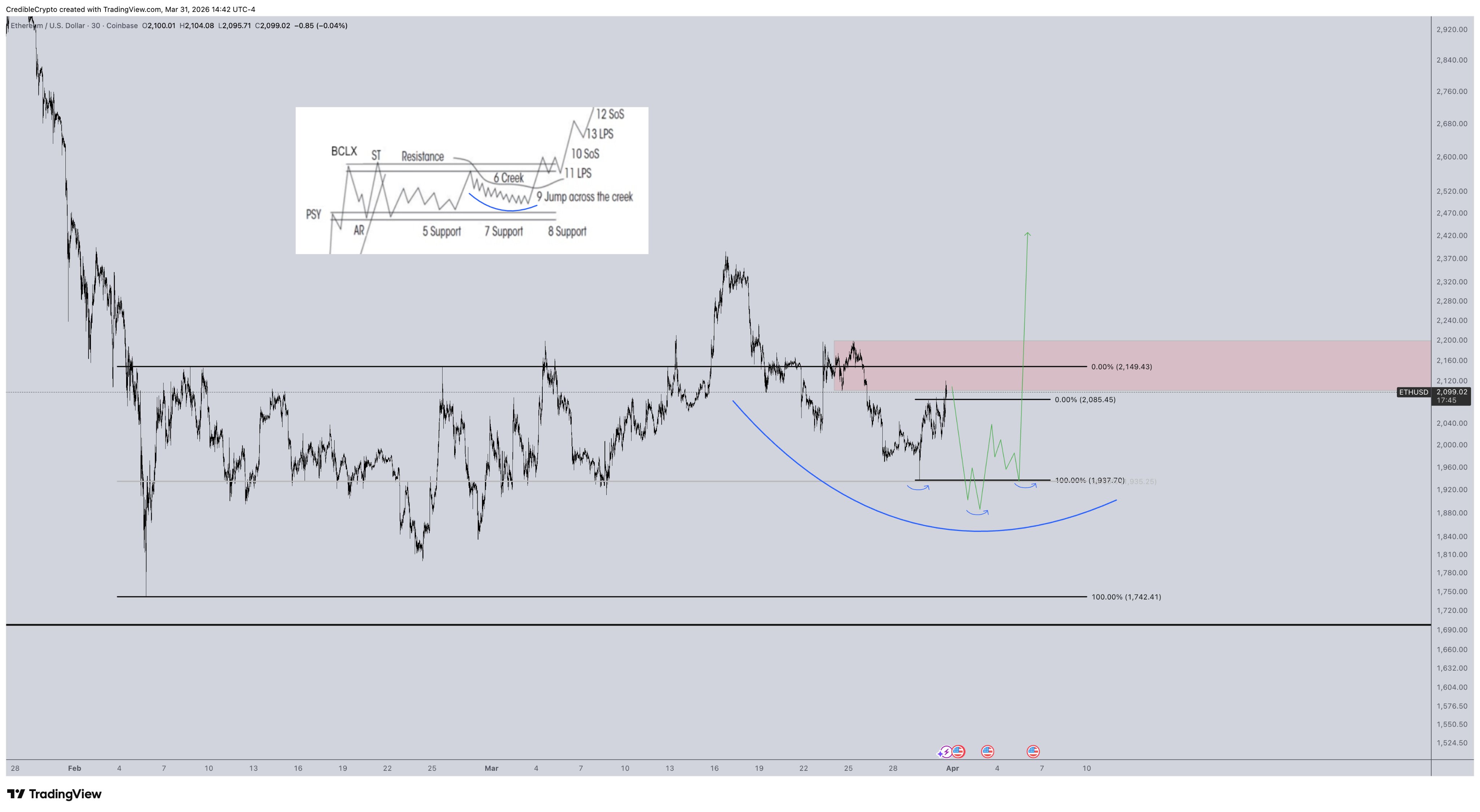 Looking at his chart, the analyst suggests that ETH will retest the level around $1,880 before soaring to $2,420 as soon as April 7th.