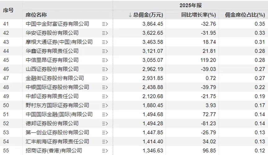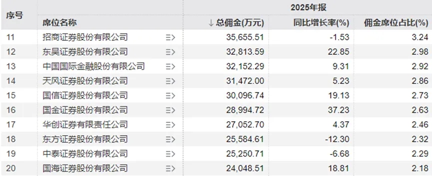 In this group, China Merchants Securities ranked 11th with total commissions of 357 million yuan (8th in 2024). Historically, China Merchants Securities has been a regular in the top ten.