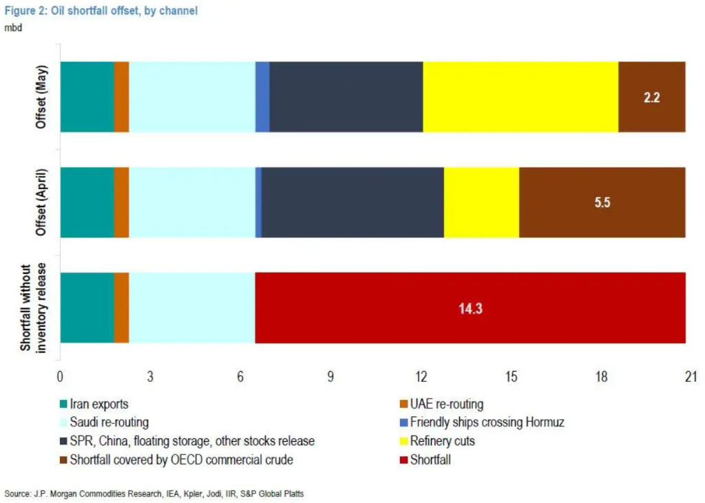 Iran is another long-tail risk. The attack on the South Pars gas field has impacted the condensate and NGL supply chains. Due to the high degree of integration between gas processing, liquid recovery, and downstream petrochemical systems, the recovery of condensate and NGL production will lag behind the upstream restart. JPMorgan Chase predicts that by the end of the fourth month, Iranian production will still be approximately [missing information - likely a percentage] lower than pre-war levels.200,000 barrels per day.