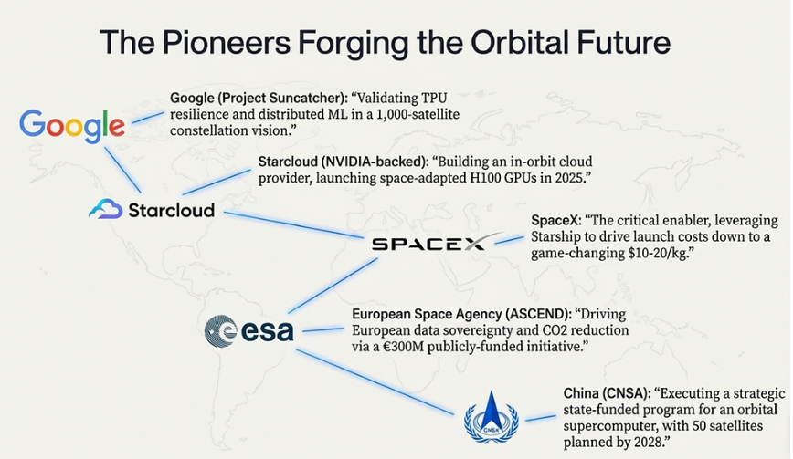 Caption: From Google to SpaceX, from startups to national space agencies, a new infrastructure race surrounding "orbital computing power" is unfolding in space.