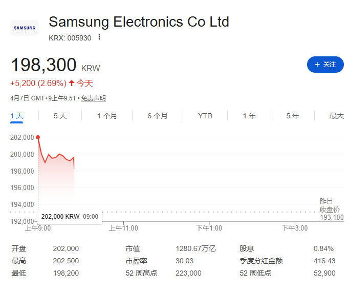 Following the announcement, Samsung's stock price rose as much as 4.6% to 202,000 won in early trading on Tuesday, outperforming the broader market index's gain of about 2%. The gains have since narrowed to less than 3%.