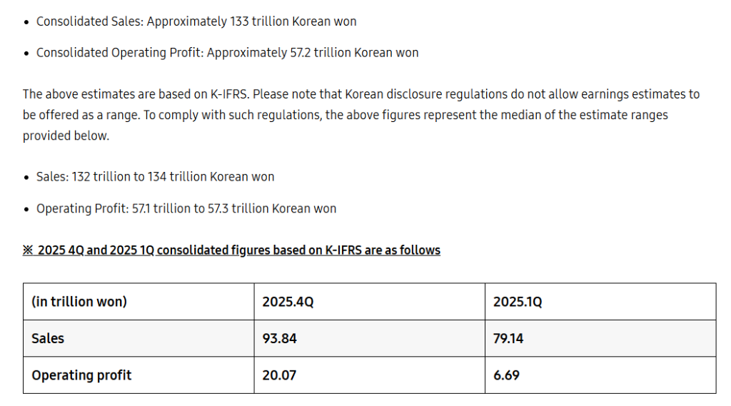 First-quarter consolidated revenue is estimated at approximately 133 trillion won, representing a year-on-year increase of about 68%.