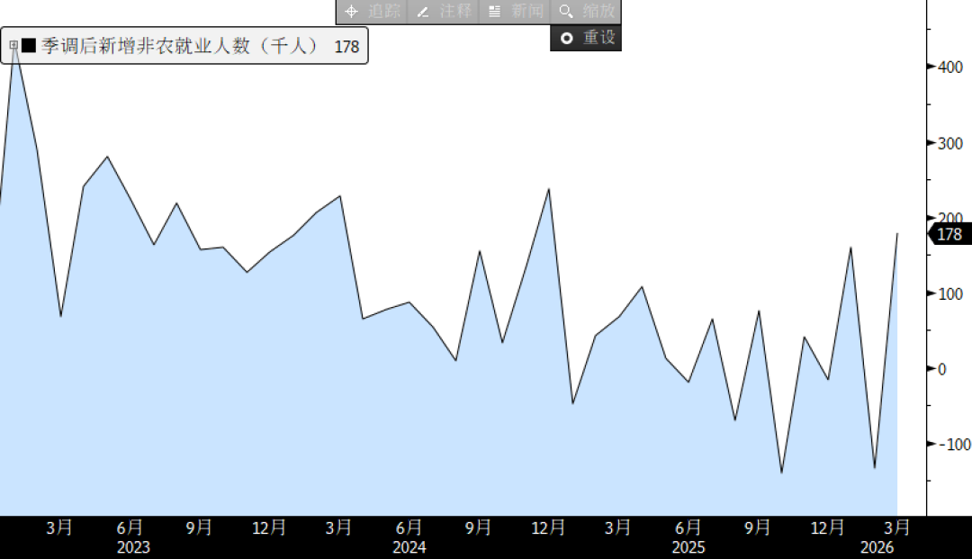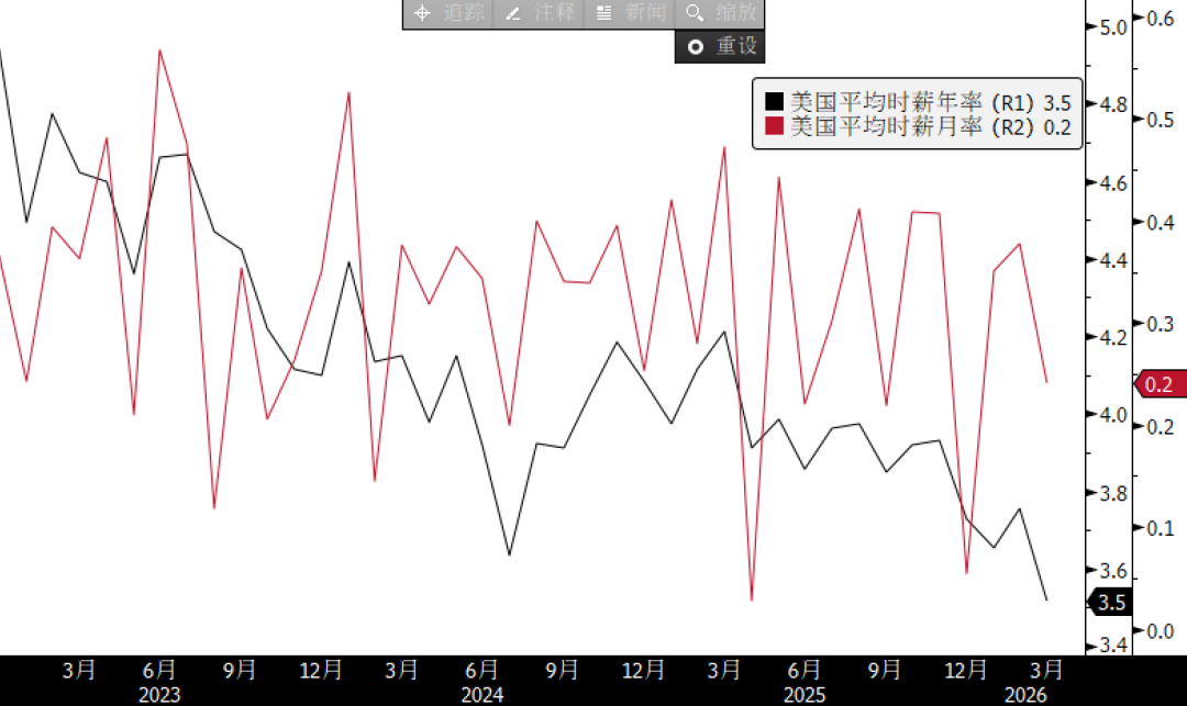 First, while the March employment data appears positive on the surface, the decline in the labor force participation rate and the continued slowdown in the growth rate of average hourly wages are significant risks that cannot be ignored. The annualized rate of average hourly wages has fallen to its lowest level since 2022, indicating that companies do not have a strong demand for labor. It is also worth noting that this data was collected shortly after the outbreak of the US-Iran conflict, meaning that companies may not have yet incorporated the conflict into their recruitment decisions.