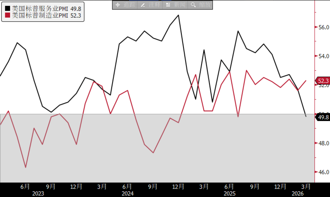 In addition, the US S&P services PMI in March hit a three-year low of 49.8, falling below the 50-point mark that separates expansion from contraction, in stark contrast to the increasingly recovering manufacturing sector, indicating a continued decline in the momentum of the US service sector.