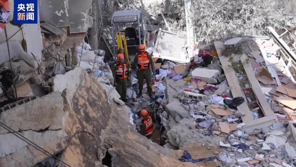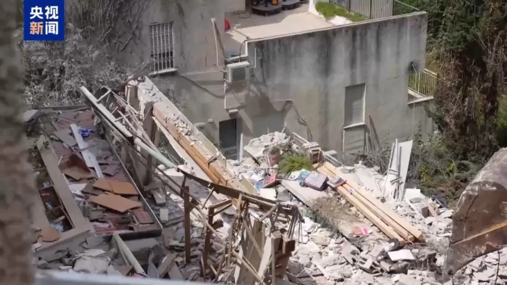 CCTV reporter Liang Hui:Now let's look at the location of this attack site. The direction I'm pointing is the building that was hit by the missile. And in the distance behind me, you can see that Haifa Port, the power plant, and Haifa Airport are all in that direction. They're only a few kilometers away from where I am now, as the crow flies.