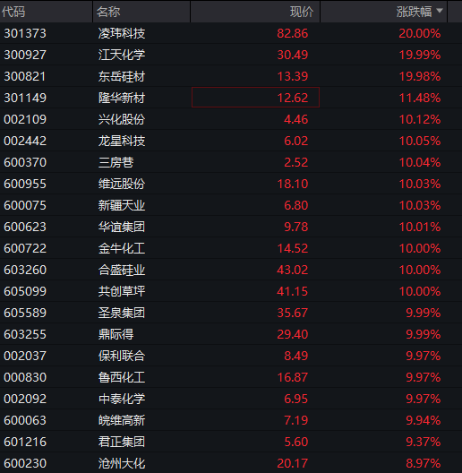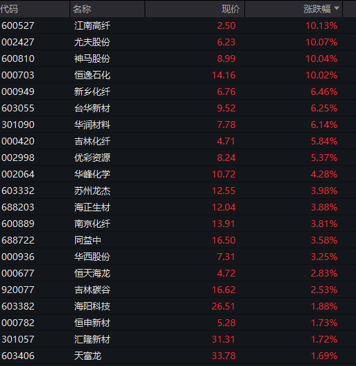 Meanwhile, chemical stocks became the leading sector in the A-share market that day, with sub-sectors such as chemical fibers, chemical raw materials, and petrochemicals showing the largest gains. The combination of supply shocks, price increase expectations, and policy catalysts propelled the chemical sector to stand out in the market that day.