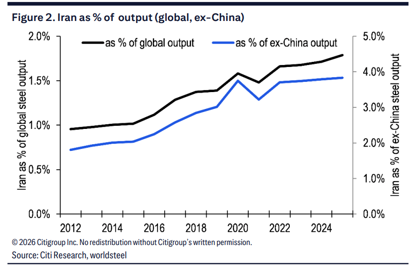 Citigroup stated that Iranian steel production is highly dependent on direct reduced iron (DRI) gas-based processes, which is significantly different from the globally mainstream blast furnace ironmaking method.This also significantly increases the difficulty of finding a replacement.