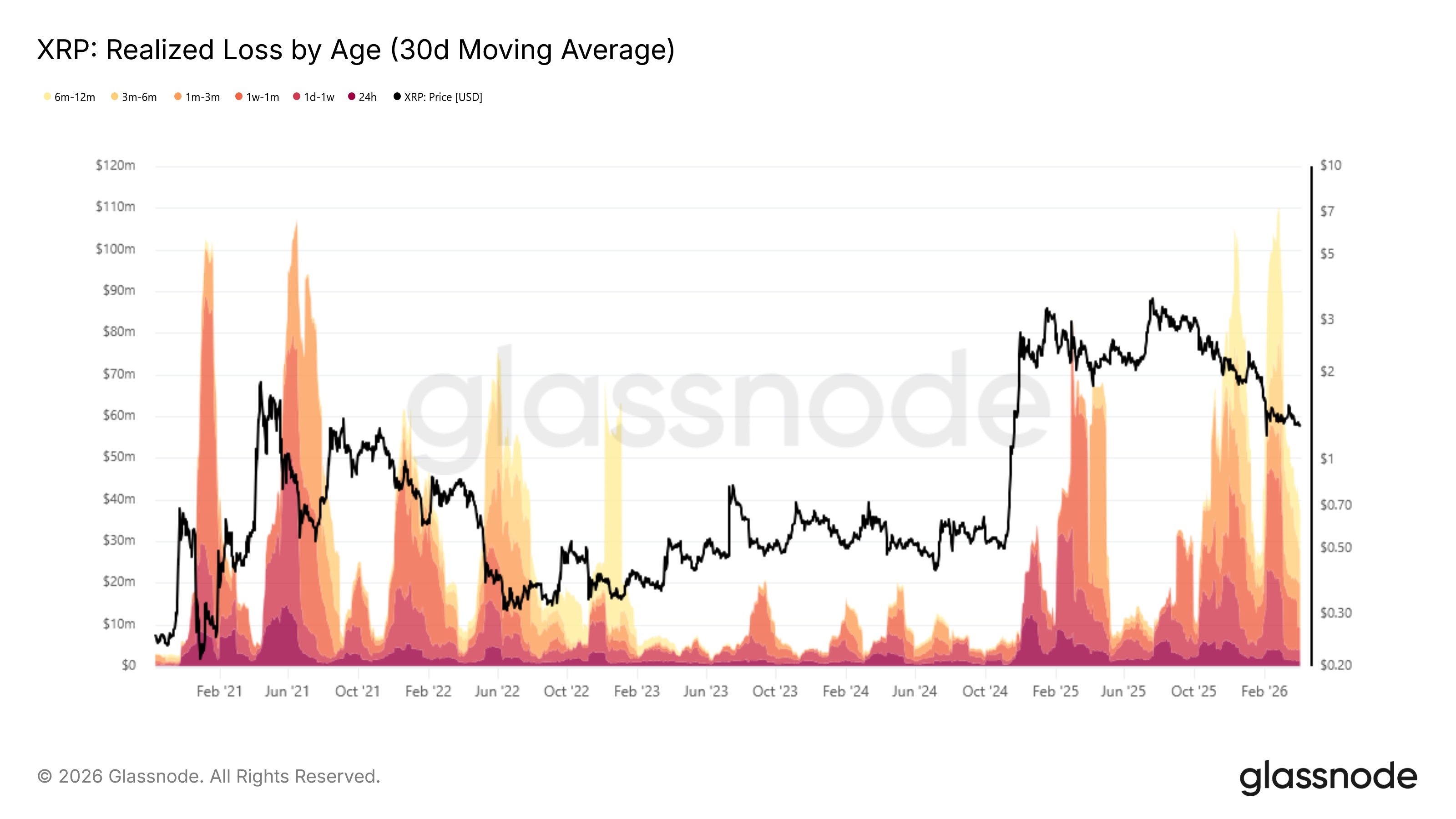 Investors who bought above $2 over the past year have been consistently realizing losses. Specifically, daily realized losses have ranged between $20 million and $110 million since November 2025.