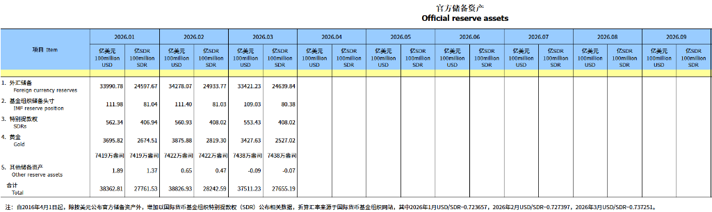 On April 7, data from the People's Bank of China showed that China's gold reserves stood at 74.38 million ounces at the end of March, compared with 74.22 million ounces at the end of February, marking the 17th consecutive month of increase in gold holdings.