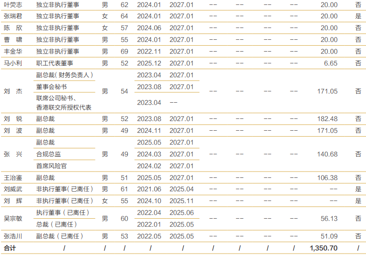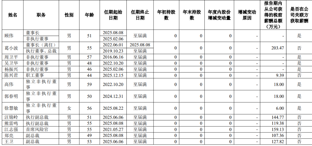 According to the 2025 annual report, the newly appointed chairman, Gu Wei, took office mid-year and did not receive any remuneration from the company. President and Executive Director Ge Xiaobo's annual income was 2.0347 million yuan, which is relatively high among senior executives, but he is not the highest earner. The highest earner is Xu Chun, the vice general manager who also serves as the director of the Guolian Minsheng Research Institute, with a pre-tax income of 2.4225 million yuan.