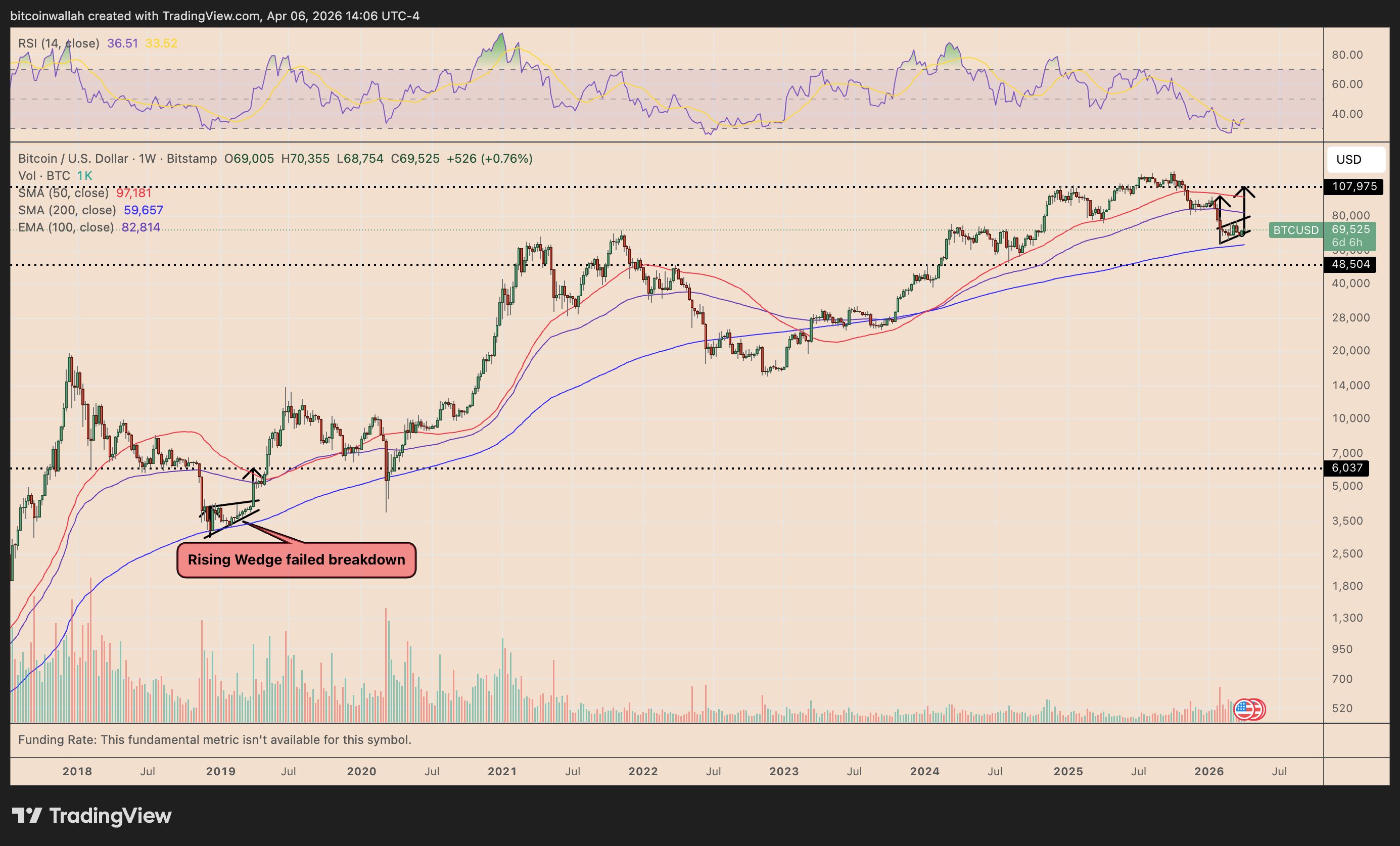 In the current cycle, the same 200-week MA limited further downside attempts in February, suggesting that a base may be forming. Historically, this level has acted as a bottom during major corrections and could provide the required momentum for the 59% and 62% rallies to reach between $108,000 and $110,000.